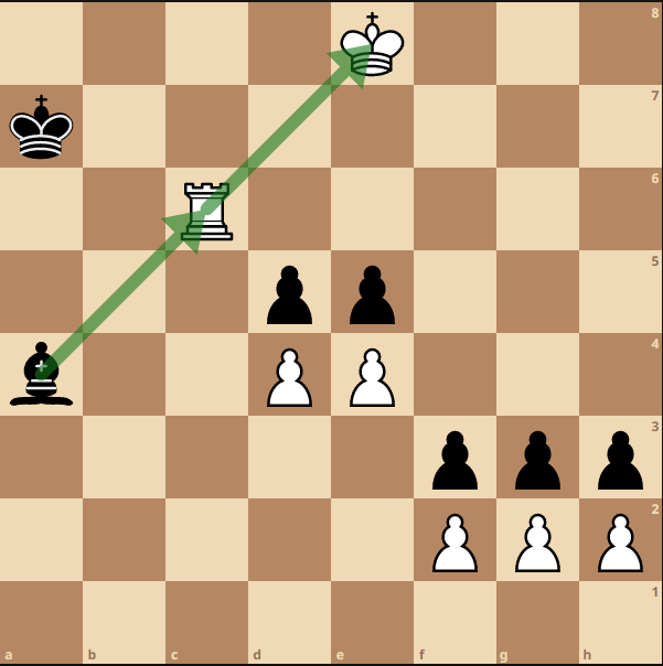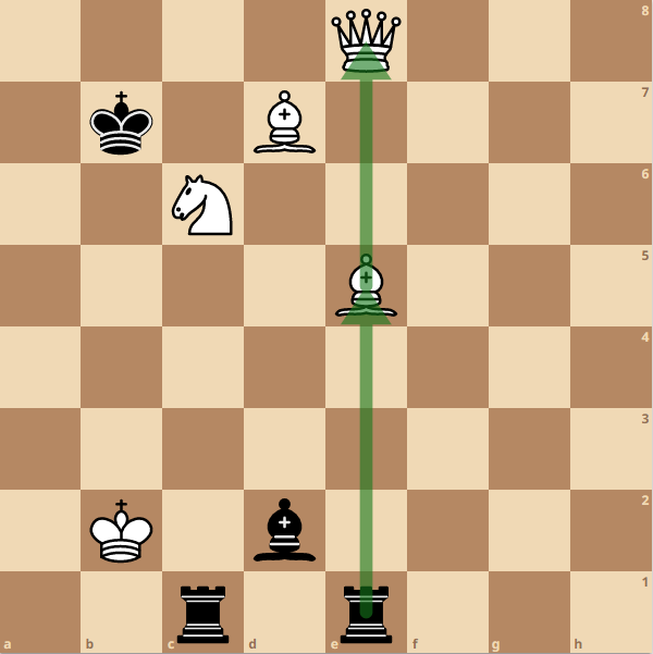 Comme vous pouvez le voir la fou ne peut pas bouger vue qu'il y a la dame derrière, le fou peut quand même bougé mais si el fou bouge on gagnera la dame